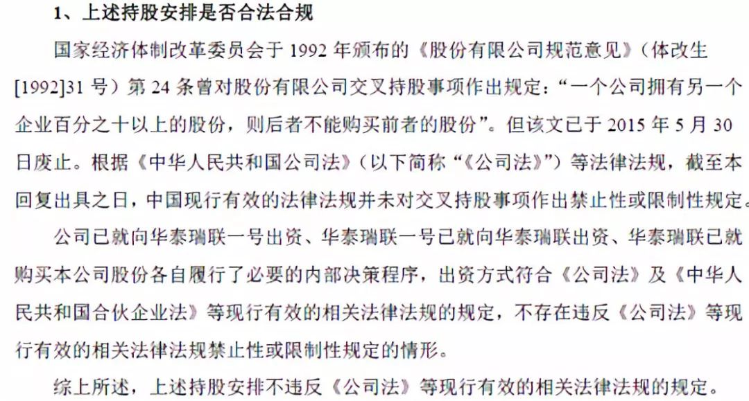 雅克科技并未解决“交叉持股”问题,这引来了交易所的监管问询,雅克科技的问询回复获得了交易所的认可。