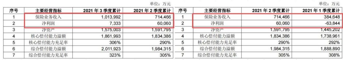 单季度看,民生保险一季度末净利润为-6.38亿元,而二季度末则实现盈利6.01亿元,由此计算,民生保险二季度单季实现净利润12亿元;而综合前三季度的净利润看,民生保险第三季度单季净利亏损超5亿元。
