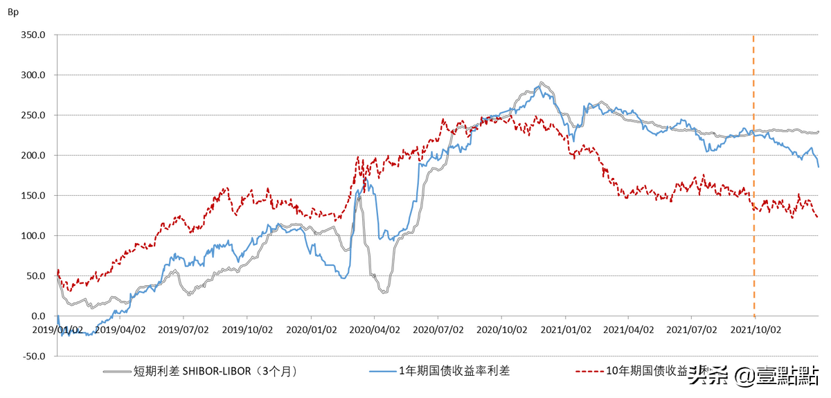 2021年12月31日,中美之间长期利差(10年期国债收益率)为126BPs,较2020年末缩小96BPs;中期利差(1年期国债收益率)为185BPs,较2020年末缩小52BPs;短期利差(3个月SHIBOR和LIBOR利率)为229BPs,较2020年末缩小23BPs。中美利差年内虽有所收窄,但仍略高于2015年以来历史均值水平,对人民币汇率形成支撑。
