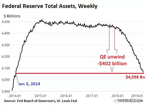 上图为美联储自18年以来尝试开始缩表,美联储的资产负债表一共减少了4020亿美元的规模。