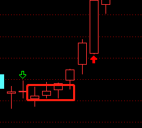 多方炮基本特征就是,两根阳线中间夹带着一根阴线,这根阴线既 被前一根阳线所孕育,又被后一根阳线所吞没。当多方炮出现在底部整理区域时,是非常强烈的看涨买入信号,《如图》