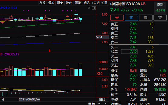 另一大煤炭权重股中煤能源盘中则一度暴跌超过8%,中煤能源目前市值超过800亿元。