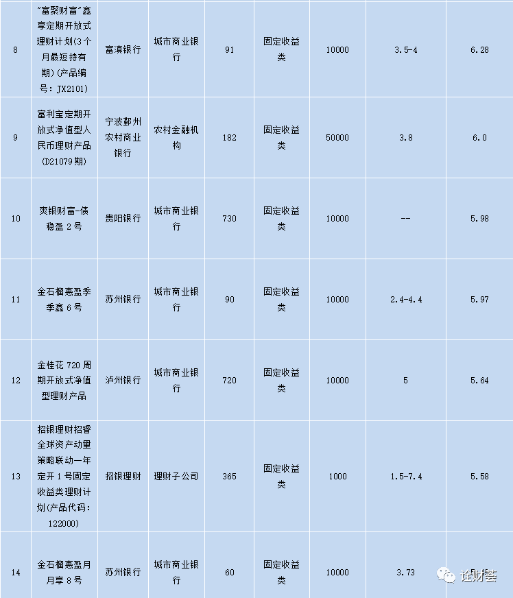 「产品理财产品」商业银行理财产品有哪些(本周在售明星理财产品一览)