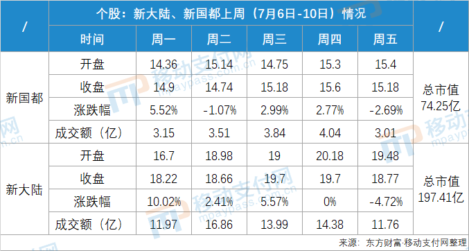 新国都上周日均成交额为3.51亿,新大陆上则为13.79亿,后者更为活跃。