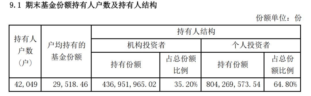每年的中报和年报,基金都会公布其持有人结构,包含了机构投资者和个人投资者的比重。