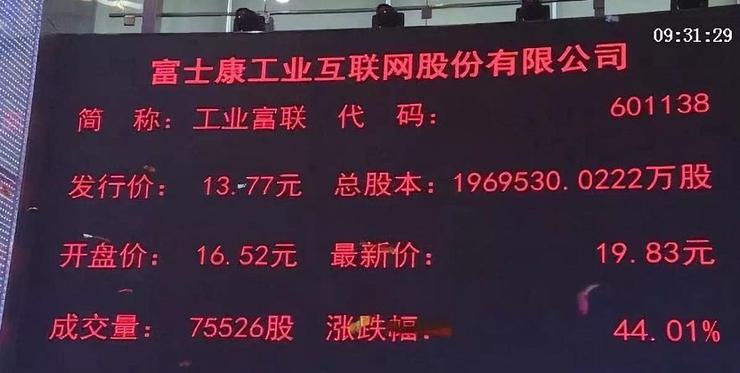 6月8日,富士康工业富联(601138.SH)于A股开盘,开盘秒涨停,报19.83元/股,市值达3905.58亿元,超过海康威视、美的集团等。